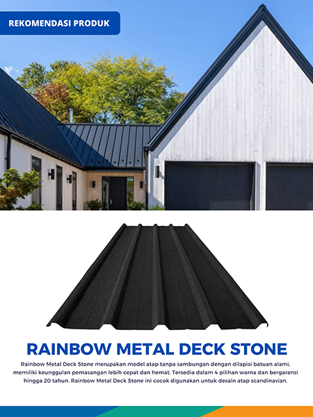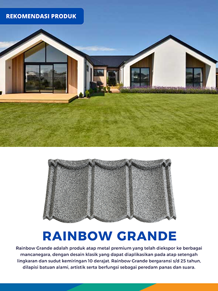Our company has developed into a pioneer of metal roof manufacturers in Indonesia. With experience and high production standards that have been tested so that the Rainbow, Arista, Vendotti, Frisco, Minimalist, Prestige, Toscano, Sirap and Rainbow Metal Deck brands have become pioneers in the market.